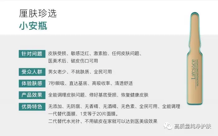 厘肤珍选品牌成立的时候,护肤理念一直走在前沿,当市面上充斥着各类噱头而对护肤没有实际帮助的产品的时候,厘肤珍选提出了摒弃一切无用成分,无防腐剂、无香精添加剂的研发理念,厘肤珍选小安瓶内测期,超10000人申请内测,反馈极佳!同时修复受损基底!