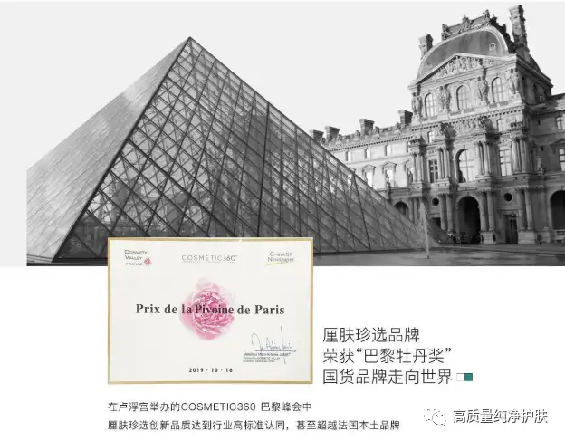 正因为厘肤珍选对于产品严格把控,在2019年受法国化妆品邀请参加“巴黎峰会”,通过一系列评选,在众多护肤品中突围而出,荣获“巴黎牡丹奖”