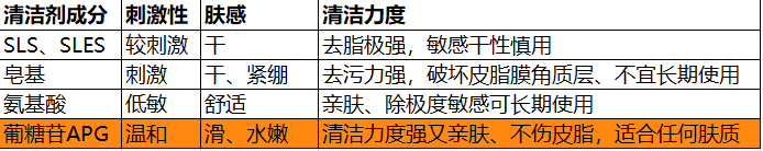 清洁力:sls/sles >皂基>APG>氨基酸