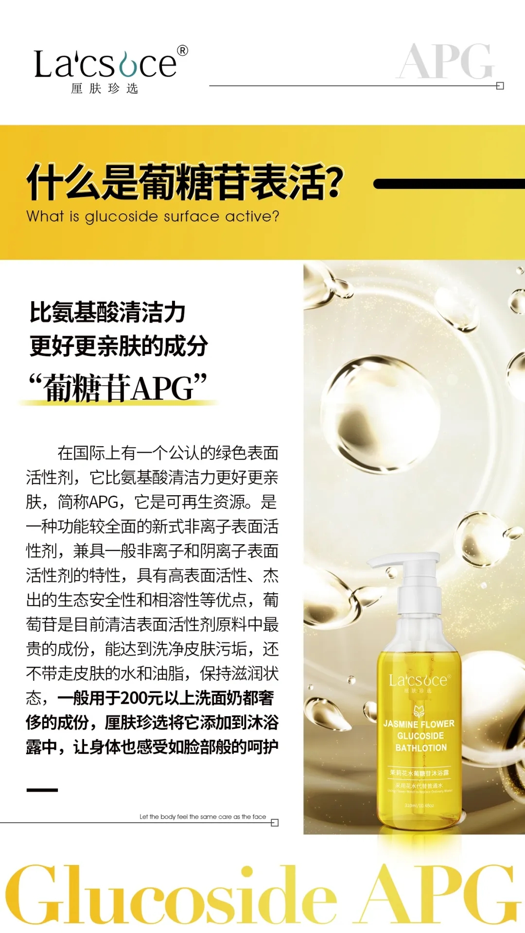 在研发过程中,我们大量地加入了售价高昂的原料——葡糖苷,使这款产品有着良好的安全性、温和性、去污性。葡糖苷会对肌肤的刺激性降到最小。用后无残留,避免了物质对皮肤天然保护层造成的伤害。