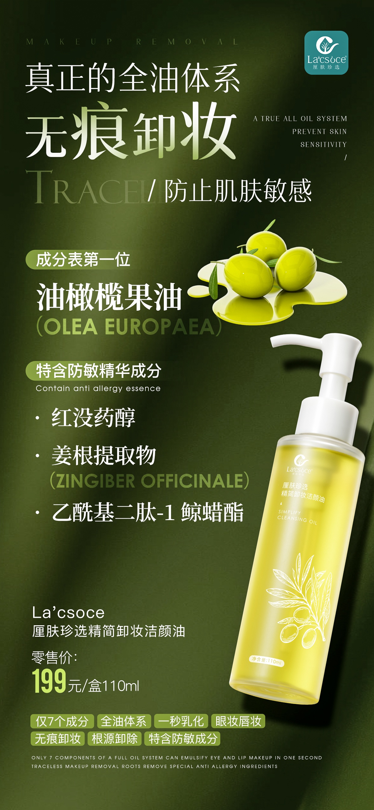 LA'CSOCE/厘肤珍选精简卸妆洁颜油植物卸妆油舒适